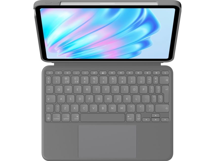 Logitech Combo Touch - Tangentbord och foliefodral - med pekdyna - bakgrundsbelyst - Apple Smart connector - QWERTY - brittisk - oxford-grå - för Apple 11-inch iPad Air (M2, M3)