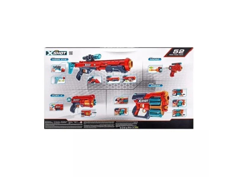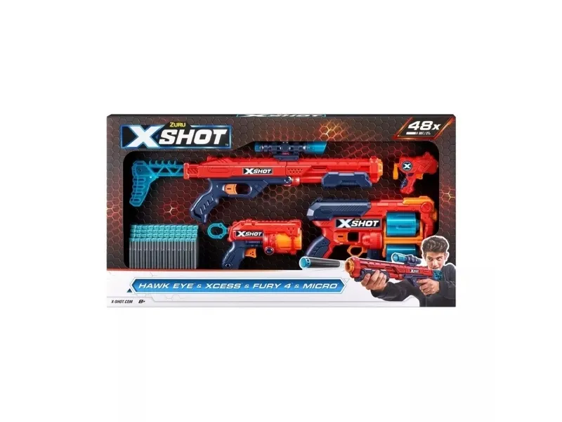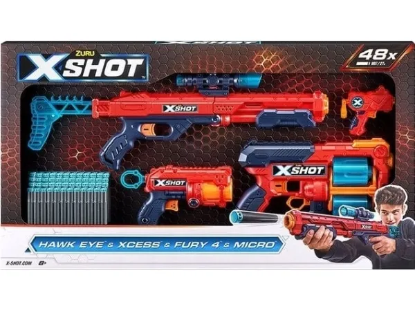 Dartblaster i skumgummi ZURU X-SHOT EXCEL COMBO PACK - HAWK EYE + XCESS + FURY 4 + MICRO launcher 48 dartpilar (36585)