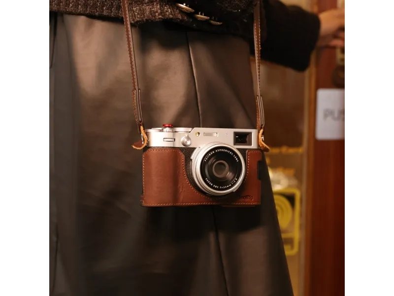 SmallRig Leather case kit for FUJIFILM X100VI 4558 is designed to protect the camera, lens, and enhance the retro feel, and quality of the camera. The kit includes a Leather Half Case, a flip case cover, and a shoulder strap. Both the external of the leather half case and flip case cover are made of breathable and wear-resistant first layer cowhide and repeat the silhouette of the camera to create an eye-catching style; the internal is made of Soft microfiber to provide All-around protection for the camera and lens. It perfectly fits the camera body and allows access to camera interfaces and buttons: battery compartment, MSC mode, card slot, etc.; The case is built-in aircraft-grade aluminum alloy for support to protect the camera from impacts. the bottom 1/4"-20 thread allows the case to be mounted onto the tripod directly without removing the case; The flip case cover features magnetic clasp and Velcro for more convenient and safety; It comes with a PU shoulder strap, easy to carry and hang camera.