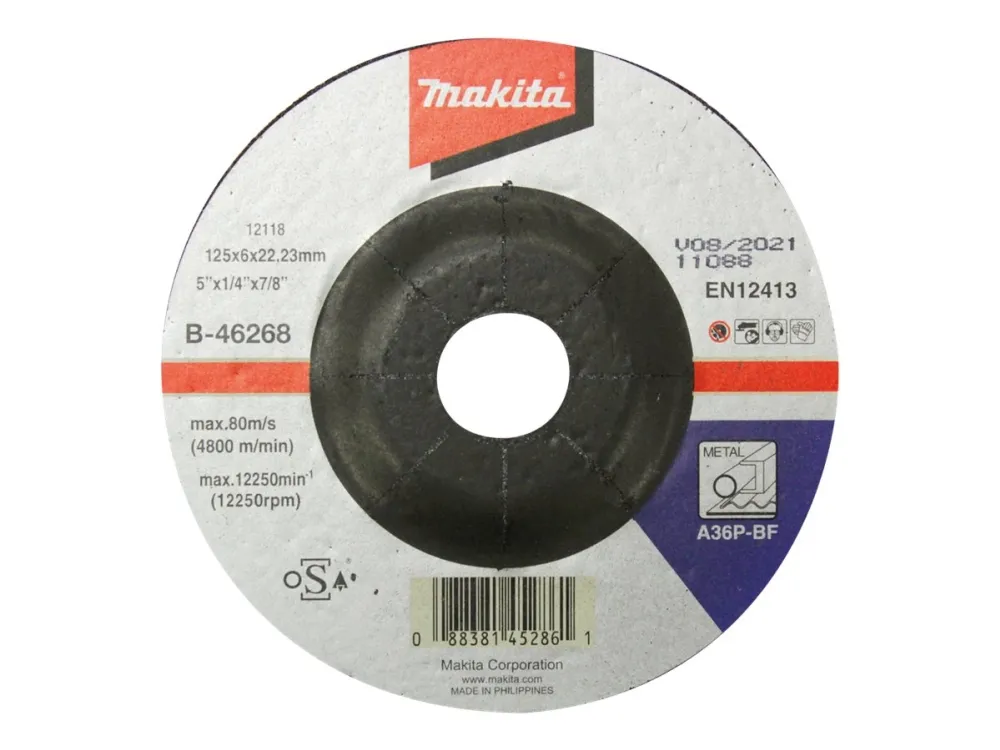 Makita - Slipskiva - för metall - 125 mm - grus: A36P-BF - för Makita GA005GZ, GA008GM201, GA008GZ; XGT GA005GZ