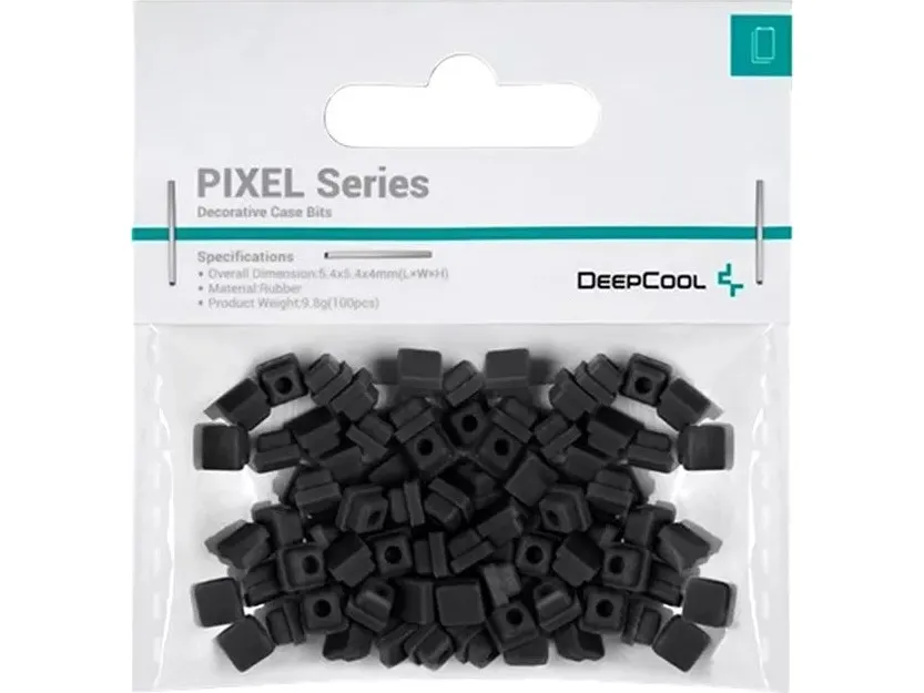 Enhance the aesthetics of any desktop computer or server with the Deepcool PIXEL Series decorative bits. Made from silicone, this set includes a total of 100 pieces that allow for customization options. Ideal for those looking to add a touch of personal flair to their equipment while ensuring practicality and functionality.