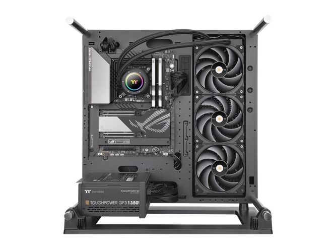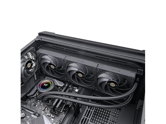 The Thermaltake TOUGHLIQUID 420 EX Pro ARGB all-in-one liquid cooler is a solution for keeping your system cool and running efficiently. With an impressive air flow of 119.6 cfm and air pressure of 3.57 mm, it efficiently dissipates heat from your processor, ensuring stability even under heavy loads. Its compatibility with a wide range of sockets makes it a versatile choice for various builds, from gaming rigs to professional workstations. The cooler operates quietly at 31.6 dBA, thanks to its 2nd generation hydraulic bearing, making it an ideal choice for environments where noise levels are a concern. Constructed with high-quality materials such as copper and aluminum, and featuring rubber tubes for reliable liquid flow, this cooler is designed for durability and long-term use. Additionally, the ARGB lighting and MagForce cable management add aesthetic appeal to your setup, allowing for a personalized and tidy look. Whether you're a gamer, content creator, or professional, the Thermaltake TOUGHLIQUID 420 EX Pro ARGB offers the cooling performance, compatibility, and style you need.