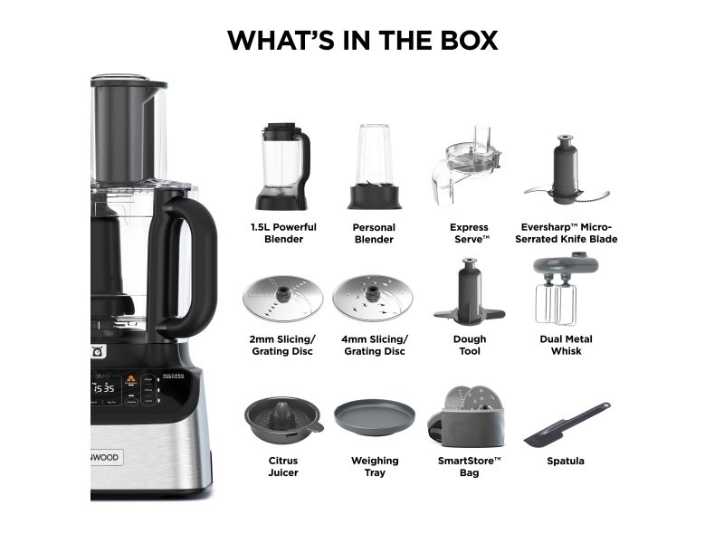 Kenwood FDM73.850SS, 3 l, Grå, Knappar, Vispning, Blanda, Hackning, Skärande, Knådning, Mixning, Omrörning, 1 m, 0,5 l