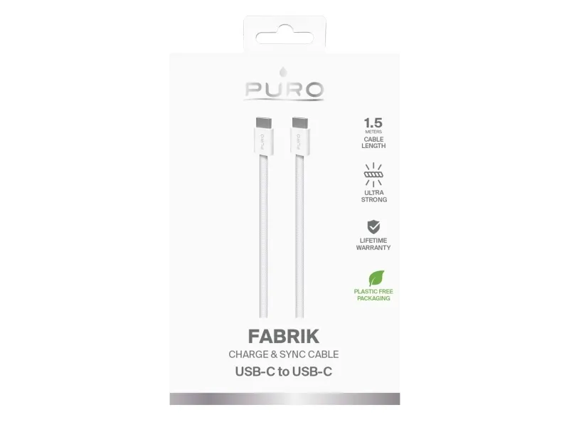 Kabel Puro Flätad USB-C/USB-C 60W, 1,5 m, vit