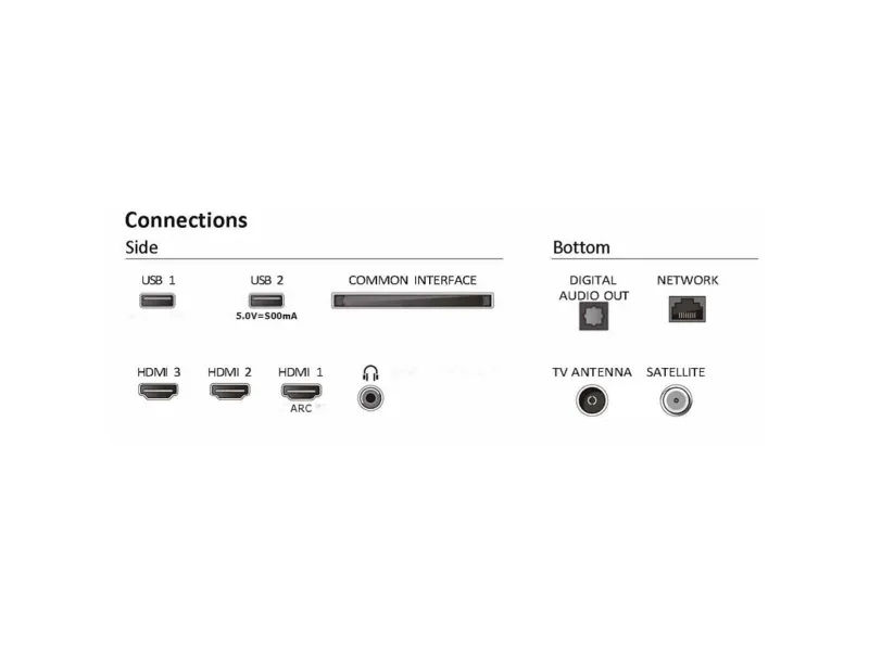 TV:n är utrustad med ljudfunktioner och har ett inbyggt högtalarsystem med Dolby Digital-ljud för att skapa en uppslukande ljudupplevelse. Ytterligare funktioner som AI Sound och Clear Dialogue säkerställer en tydlig ljudkvalitet. Anslutningsalternativen inkluderar USB-, HDMI- och LAN-portar, tillsammans med inbyggt Wi-Fi för streaming och surfning på internet.