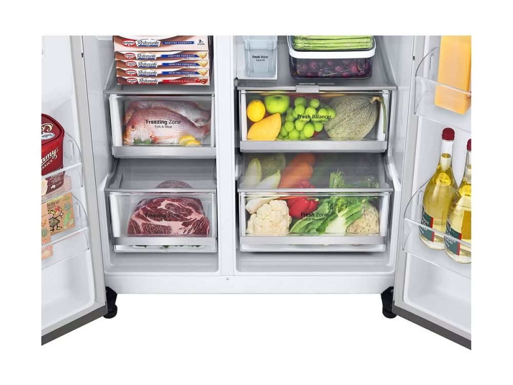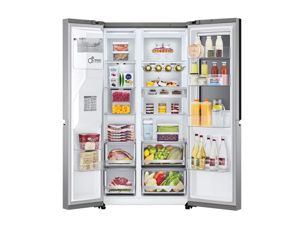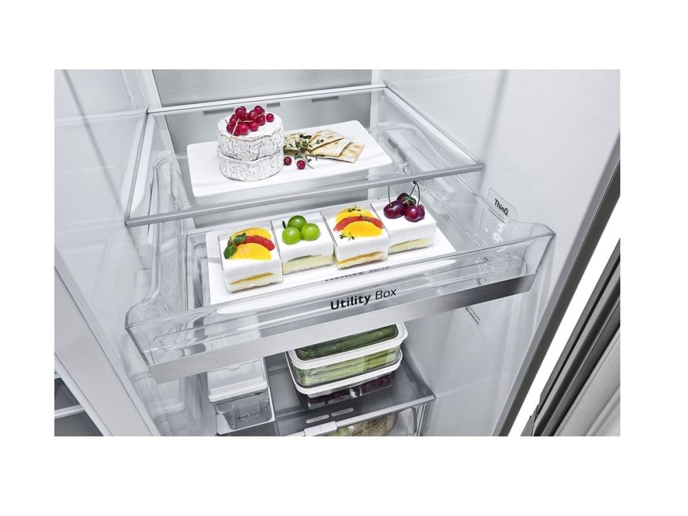 LG GSXV91PZAE - Kylskåp/frys - sida vid sida med vattenbehållare, isbehållare - Wi-Fi - bredd: 91.3 cm - djup: 73.5 cm - höjd: 179 cm - 635 liter - Klass E - blankt stål