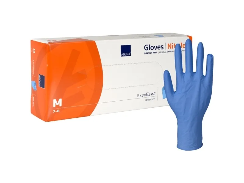 Lång undersökningshandske, ABENA Excellent, M, blå, nitril, puderfri - (100 st.)