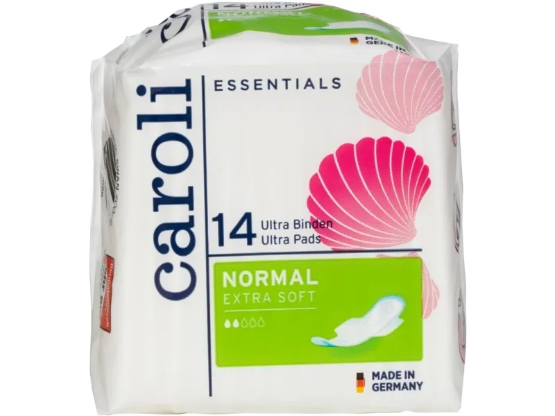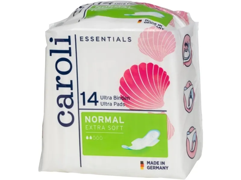 Sanitetsbindor, Caroli, 22,5x9,5cm, vit, Ultra bindor, Normal, med vingar - (12 st.)