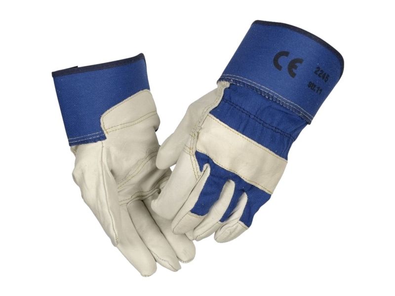 Handske i oxhud ODIN 8 blå bomull/oxläder, rigger