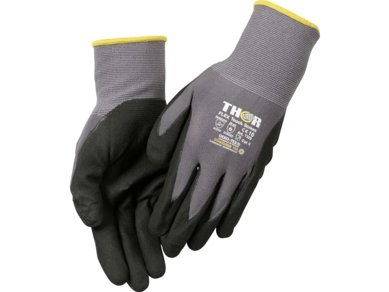 Fingerdoppade nitrilhandskar, THOR Flex, 10, svart, nitril/polyester, lycra baksida - (12 par)