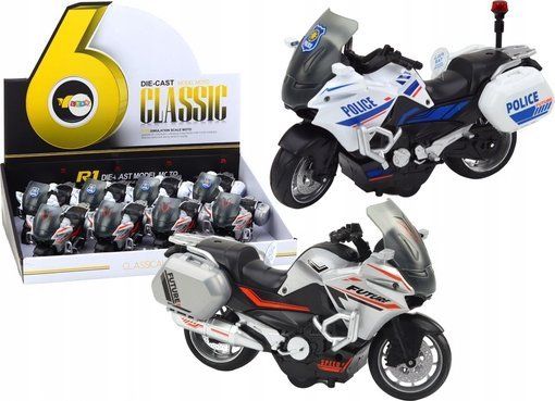 LeanToys Polis- och sportmotorcykel med friktionsdrift, skala 1:10