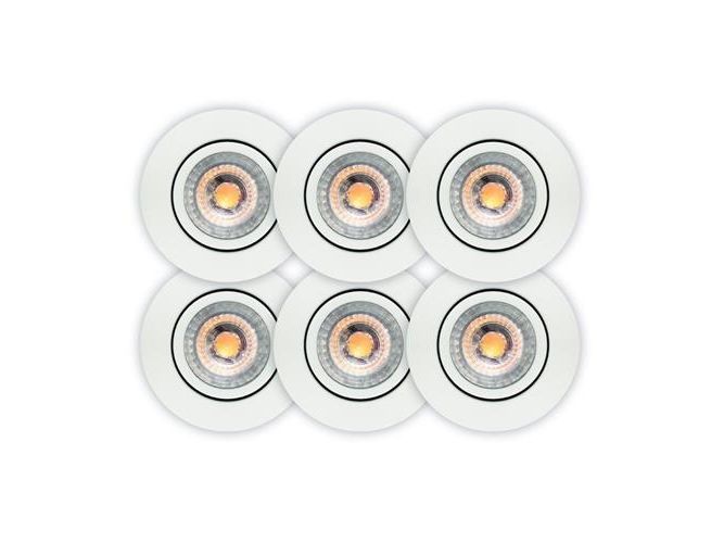 Luna low profile 2.0 6-pack downlight, ISO, matt vit 3000K 490 lm 5,9 W, dimbar, IP44