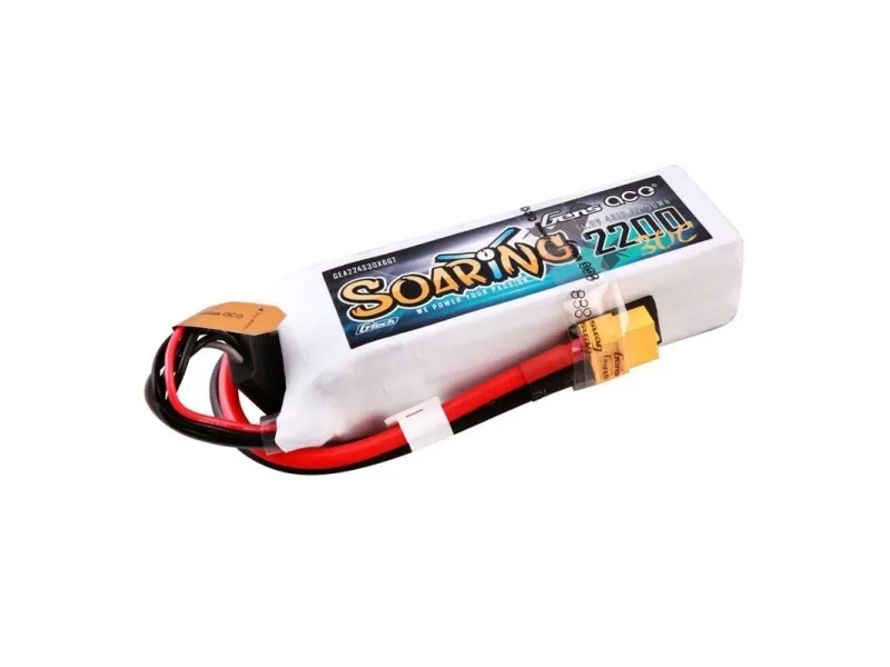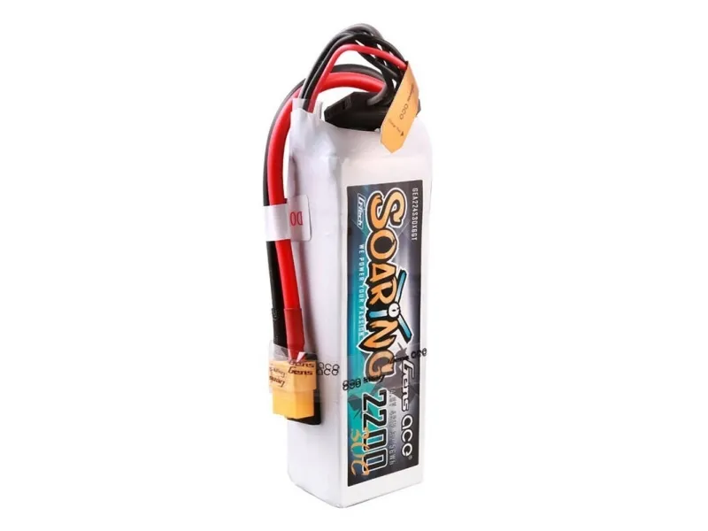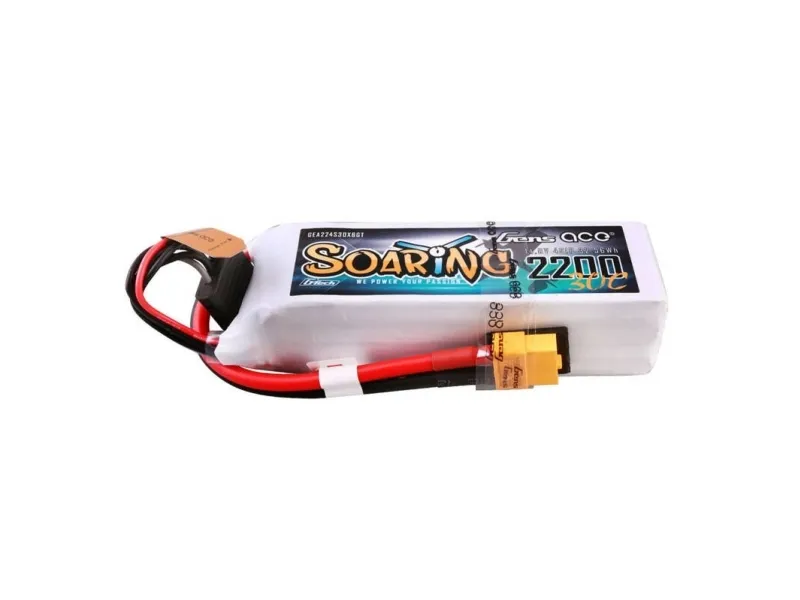 The G-Tech Soaring 2200mAh 14.8V 30C 4S1P Lipo Battery with XT60 Connector is a high-performance battery designed by Gens ace. It offers 2200mAh capacity and 14.8V voltage, making it ideal for demanding applications. A discharge rate of 30 C ensures stable and efficient power supply, even under heavy use. Its compact dimensions of 107 × 35 × 27 mm and low weight of 217 g make it easy to install and lightweight. The XT60 connector guarantees a secure and safe connection to the device, which is crucial for reliable operation.