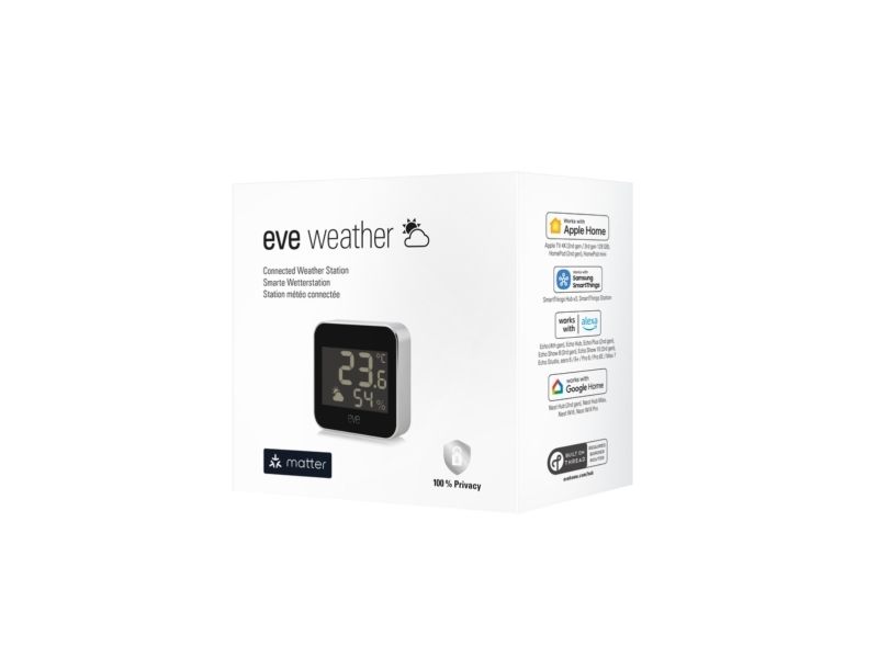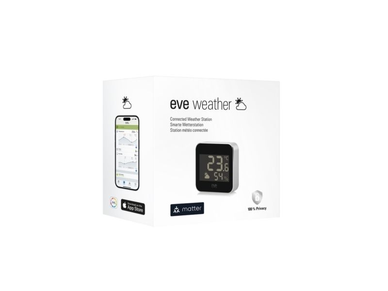 Operating efficiently between -18 °C to 55 °C, this weather station is water-resistant and complies with IPX4 standards, ensuring durability against the elements. Its integration with the EVE app and compatibility with Siri allows for monitoring and control, making it a valuable tool for those who seek useful and accessible weather information.