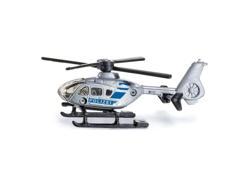 Detailed toy model of a police helicopter with robust and stable metal frame, Movable rotors. Perfect addition to other siku products. Material: metal/plastic, Dimensions: 7.4 x 4.7 x 3.1 cm.
