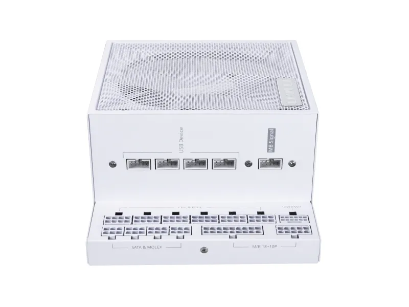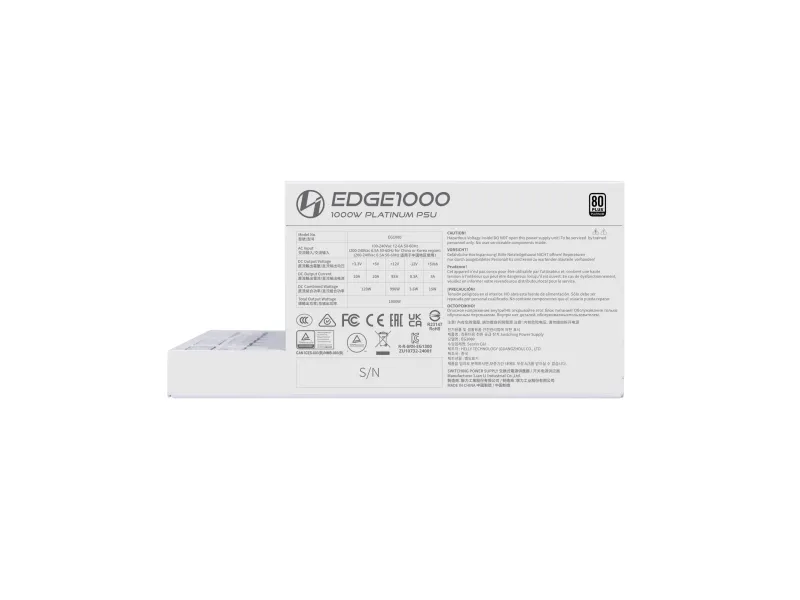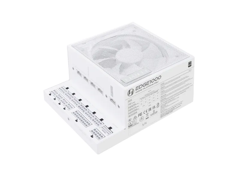 Lian Li EG1000. Total power: 1000 W, AC input voltage: 100 - 240 V, Combined power (+3.3V): 100 W. Motherboard power connector: 20-pin ATX, Motherboard power cable length: 30 cm, SATA power cable length: 120 mm. Purpose: PC, Power supply unit (PSU) form factor: SFX, 80 PLUS certification: 80 PLUS Gold. Product colour: White. Cables included: CPU, PCIe, Peripheral (Molex), SATA