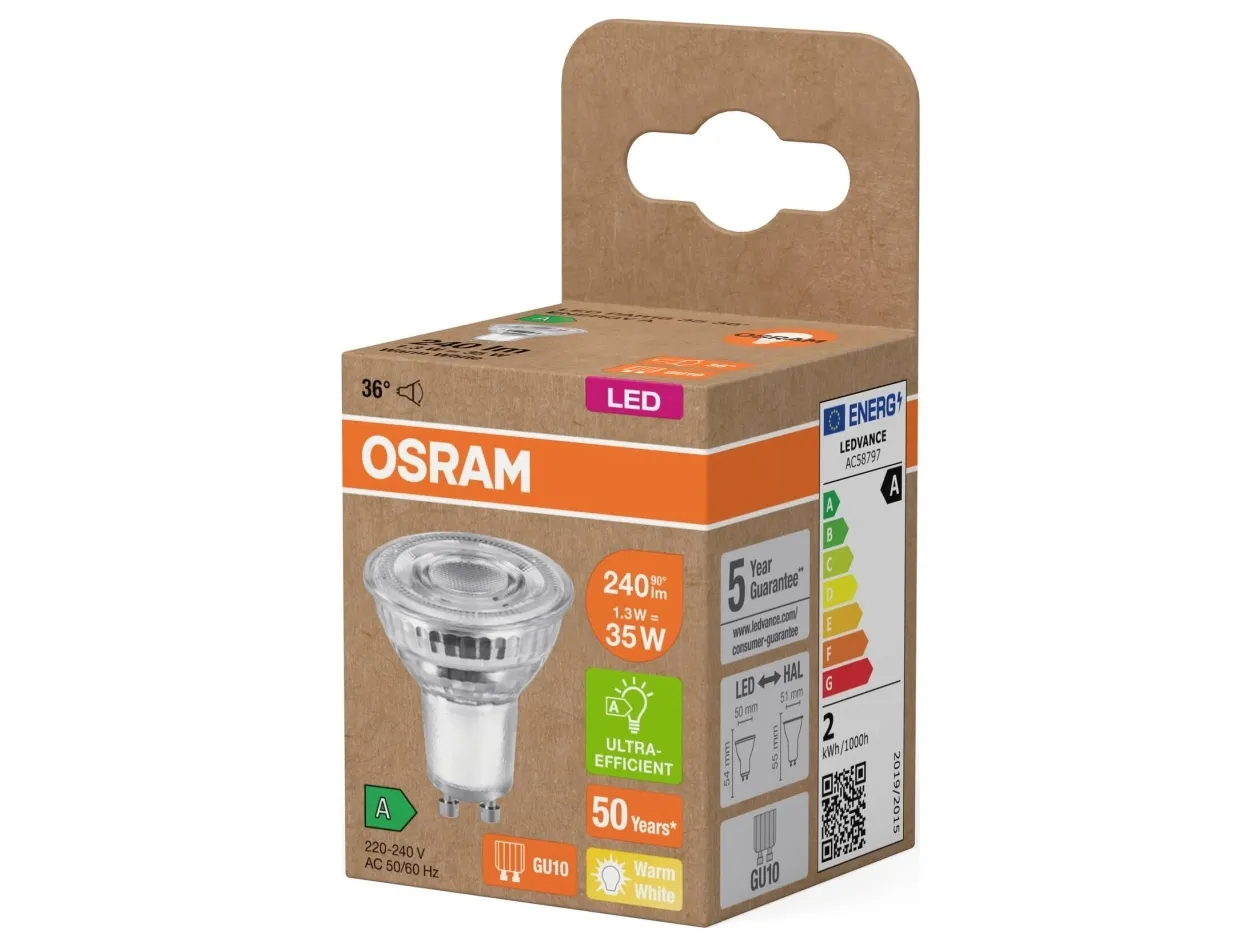 OSRAM 4099854245190 LED-reflektor glödlampa EEK A (A - G) GU10 Reflektor 1,3 W = 35 W Varmvit (Ø x H) 50 mm x 50 mm 1 st.