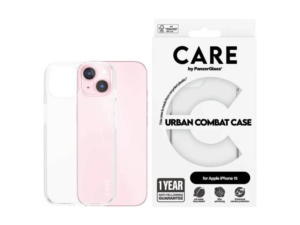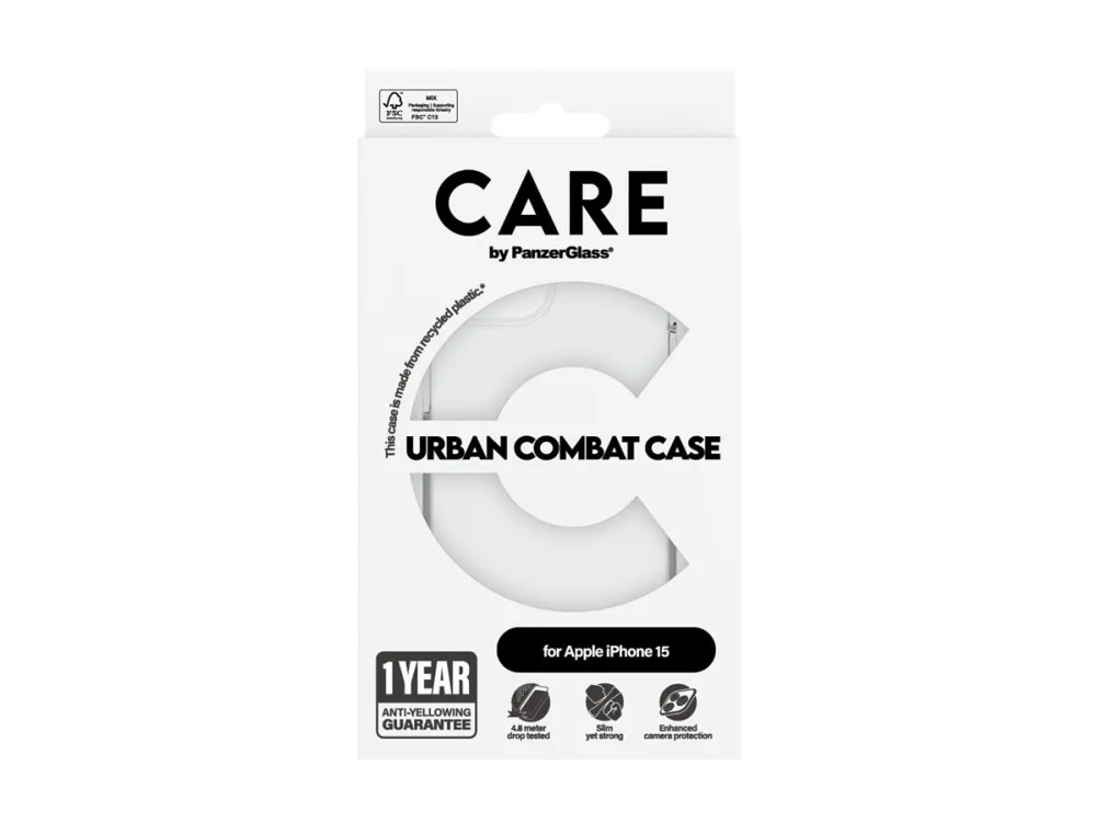 CARE by PanzerGlass Urban Combat - Baksidesskydd för mobiltelefon - termoplastisk polyuretan (TPU), polykarbonat (PC), oleofobisk beläggning - transparent, klar - för Apple iPhone 15