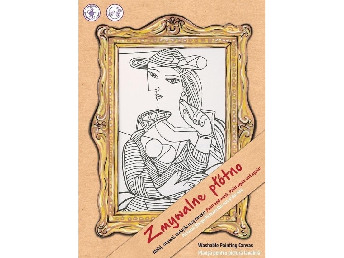 Vit canvas Kvinna i stol Rolig matta STRIGO