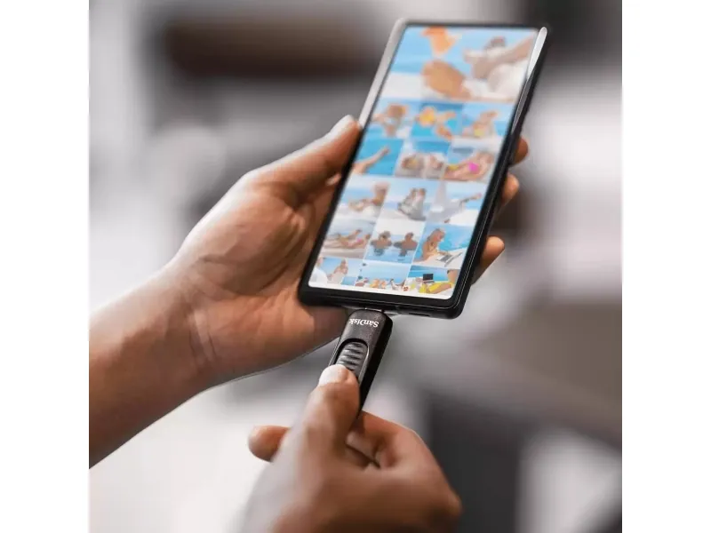 The SanDisk Ultra Slider is a high-performance USB flash drive designed to meet the needs of users who demand speed and portability. Featuring a USB-C 3.2 Gen 1 interface, it offers fast data transfer speeds, making it ideal for transferring large files quickly and efficiently. The drive's innovative retractable connector protects the interface and makes it easy to use, eliminating the need for a protective cap. With its durable design, it can operate in temperatures ranging from 0 °C to 45 °C, ensuring your data is safe in various conditions. Additionally, the inclusion of a key ring loop allows for easy attachment to keys or bags, ensuring your important files are always within reach. Whether you're a professional on-the-move or a student in need of reliable storage, the SanDisk Ultra Slider is a smart choice for your data storage needs.