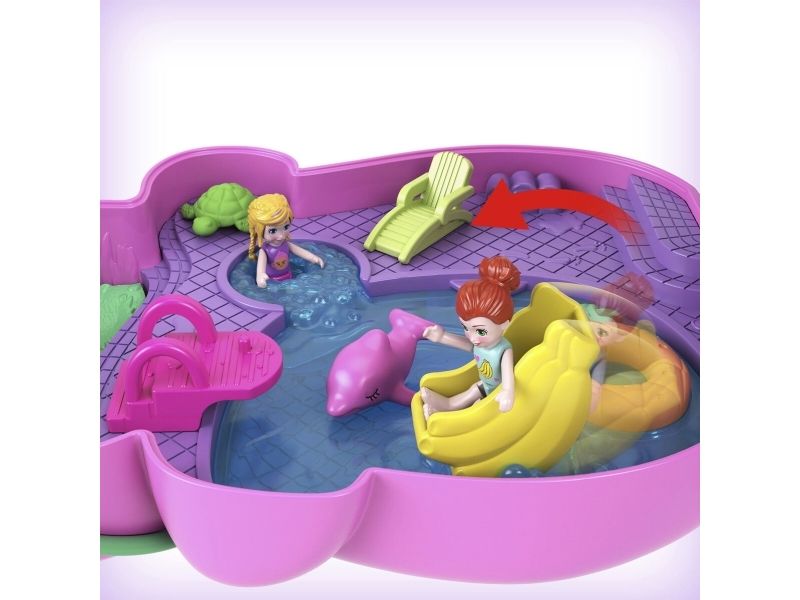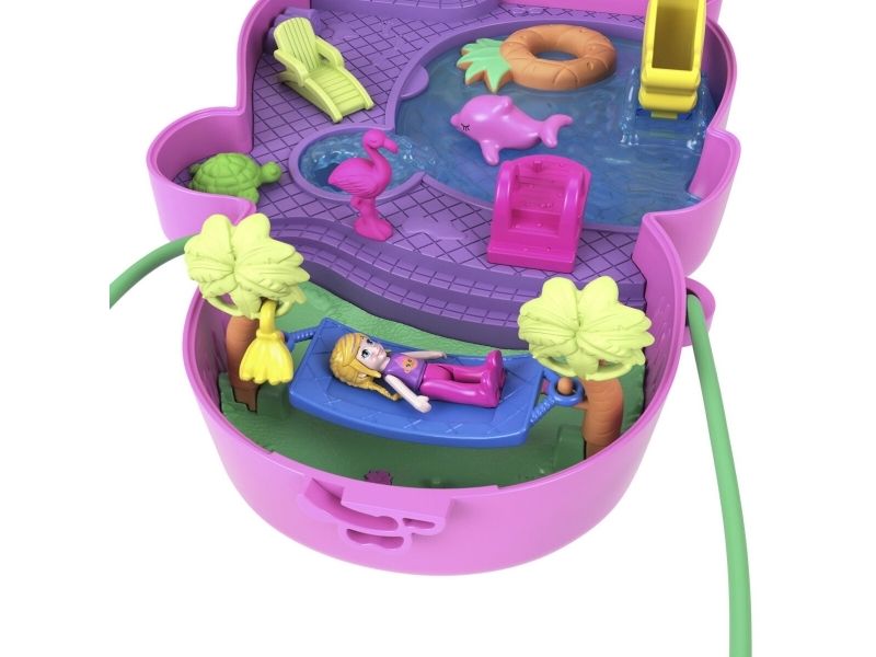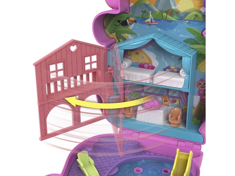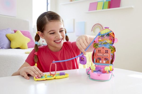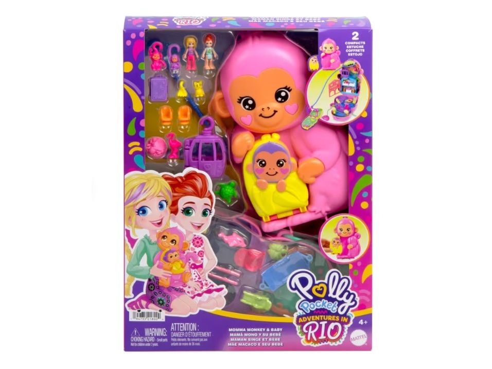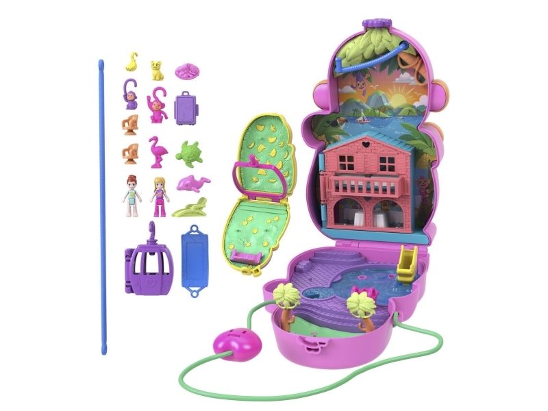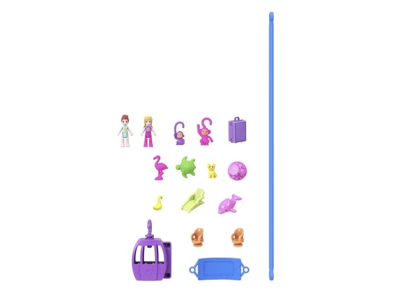 Lek med Polly Pocket-lekväskan med apmamma med unge den roliga 2-i-1-lekväskan är full av vilda äventyr! Den lilla apungen har det mysigt i mammans påse innan de ger sig ut på egna djungeläventyr. Leksetet innehåller 2 mikrodockor och 12 tillbehör, inklusive söta apor. Gunga från en lekväska till den andra i ziplinevagnen, plaska i poolen, gunga i hängmattan eller ät banansnacks i apungens djungel. Perfekt att ta med ut, packa ihop lekväskorna och bär dem i remmen. En perfekt present till barn från 4 år, särskilt de som gillar djungeläventyr med djurkompisarna! Färger och dekorationer kan variera.