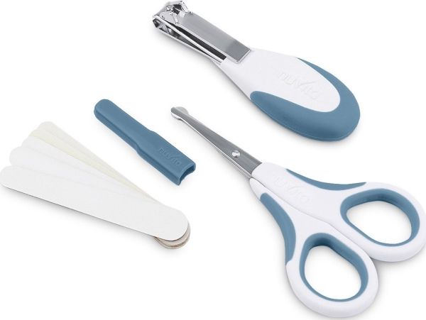 Nuvita kosmetiskt set för naglar: saxar, nagelknipor och 5 filar, Powder Blue