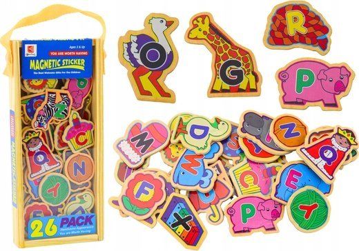LeanToys set med trämagneter bokstäver/bilder djur 26 delar