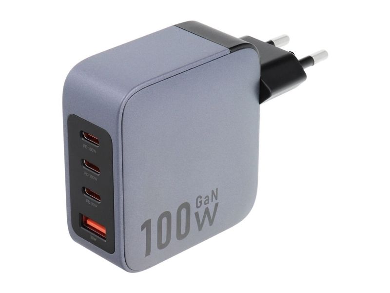Forcell GaN-laddare - 3x USB-C + 1x USB-A - 100W med PD och Quick Charge 4.0