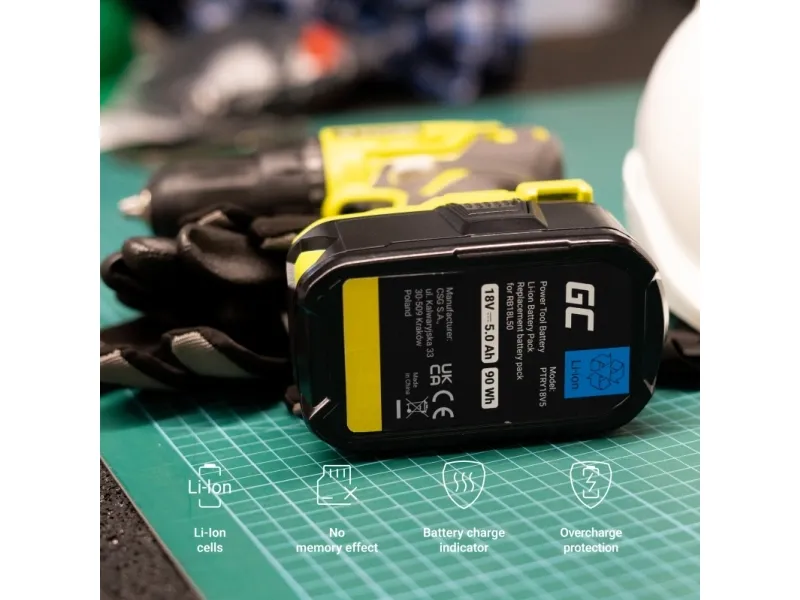 Green Cell PTRY18V5, Svart, Litium-Ion (Li-Ion), 5 Ah, 90 wh, 18 V, 81 mm