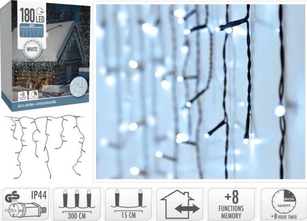 Koopman julbelysningsridå SWIETLNA ZEW 180 LED med styrning timer kallvit kabel transparent