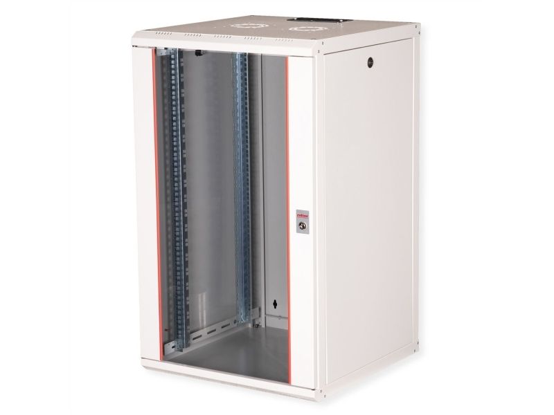 ROLINE 26.21.0009, Väggmonterad rack, 20U, Knapplås, Kuggskenor, 43 kg, Grå