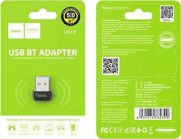 Bluetooth-adapter Hoco HOCO UA18 (USB, svart)