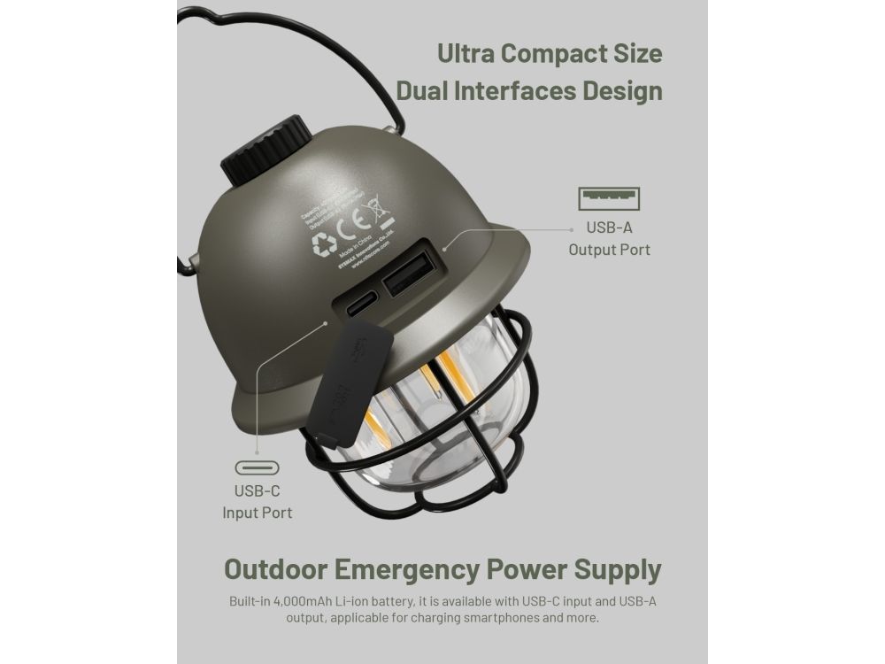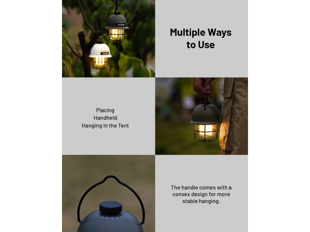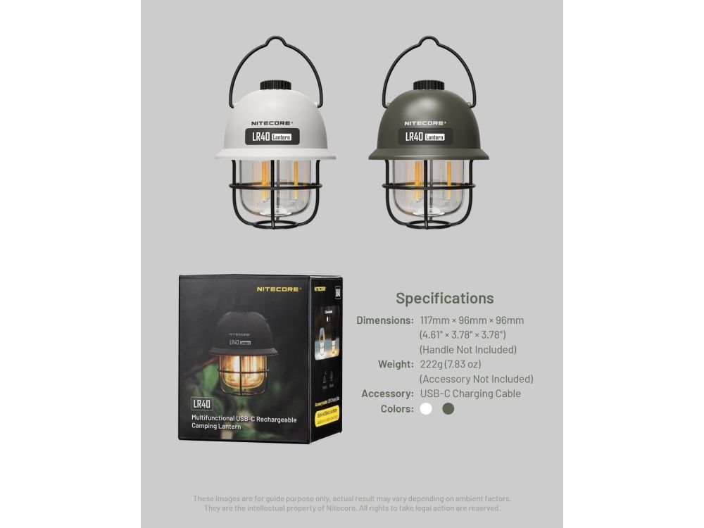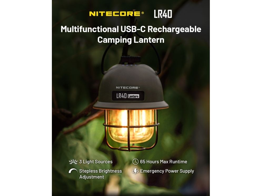 Nitecore LR40, USB powered camping lantern, Oliv, Akrylnitrilbutadienstyren (ABS), Metall, Hängrem, 100 LM, Röd, Vit
