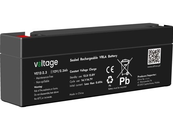 Voltage AGM-batteri 12V 2,3Ah VE12-2,3 (livslängd 6-9 år)
