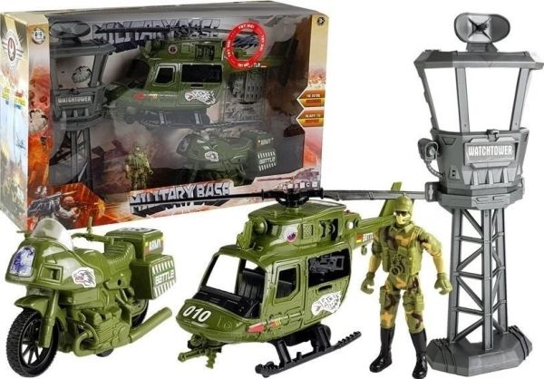 LeanToys militärt helikoptersæt: militärfordon, stridsvagn, kontrolltorn och soldat