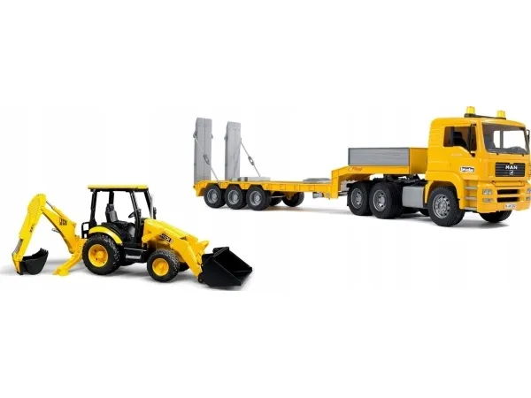 bruder MAN TGA low loader with JCB MIDI backhoe loader, model vehicle