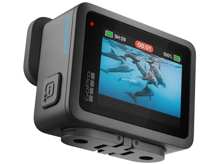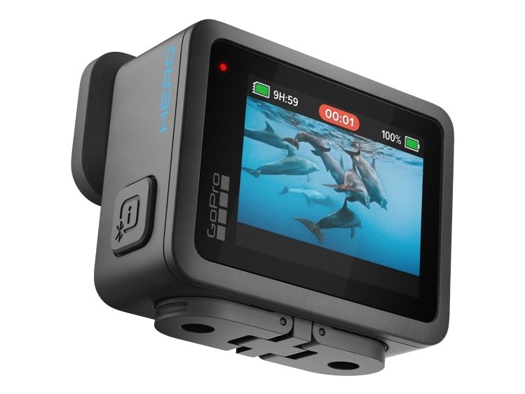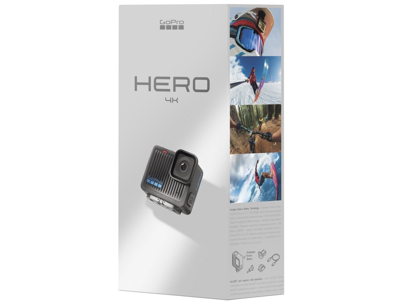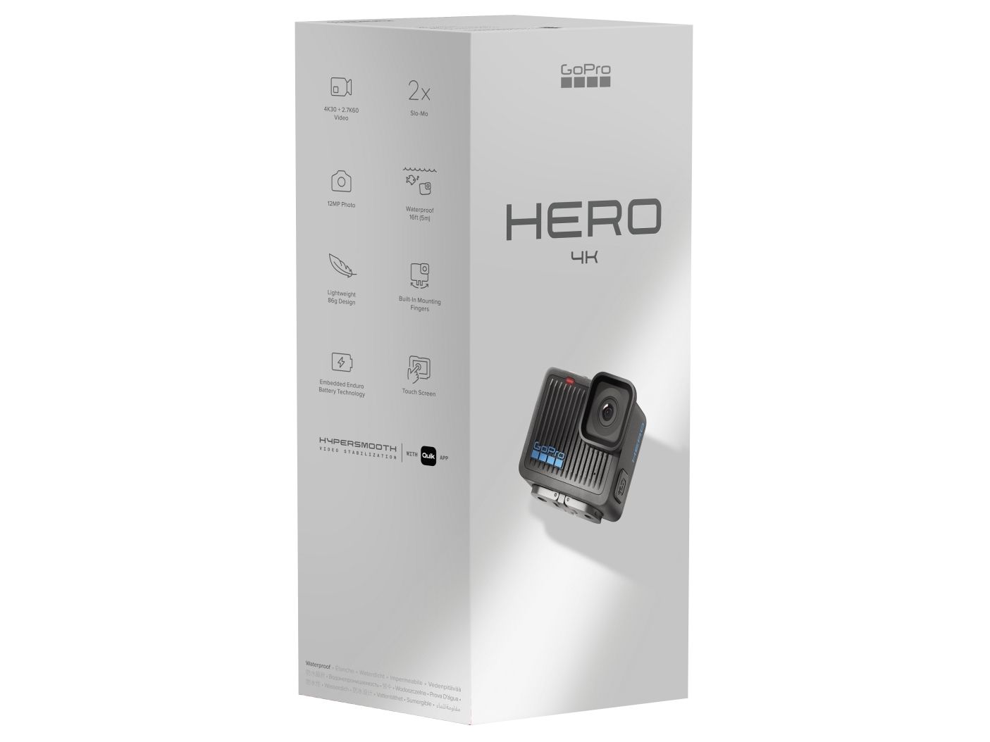 GoPro HERO actionkamera är utformad för dynamiska äventyr och ger 4K-videoinspelning med upp till 30 fps. Med ett vidvinkelobjektiv och HDR-bildförbättring fångar denna kamera detaljer i både video- och fotoläge. Det integrerade batteriet möjliggör kontinuerlig fotografering, medan den inbyggda LCD-displayen underlättar enkel navigering och kontroll av inställningar via den responsiva pekskärmen. GoPro HERO har ett vattentätt hölje och klarar undervattensdjup på upp till 5 m, vilket gör den lämplig för vattensporter och tuffa utomhusaktiviteter.