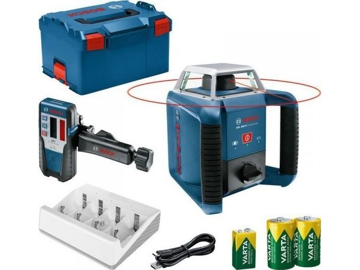 BOSCH roterande laser GRL 400 H + mottagare LR 1 + batterier + laddare VARTA LB ...