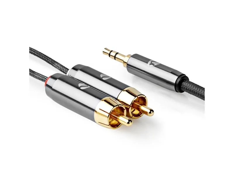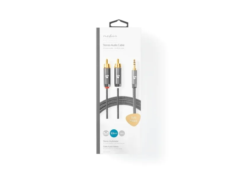 Nedis CATB22200GY10, 3,5mm, Hankoppling, 2 x RCA, Hankoppling, 1 m, Grå