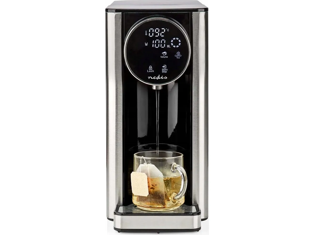 Nedis - Behållare för hett vatten - 2.7 liter - 2.6 kW - svart/aluminium