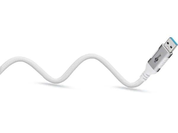USB-kabelns flätade, slitstarka textilhölje har en behaglig känsla och är skonsamt mot känsliga ytor