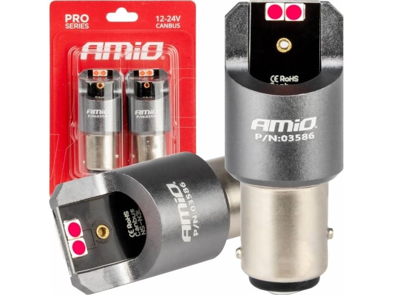 AMiO LED-lampor Canbus Pro Bay15d P21/5W 4x3030 SMD röd 12V/24V AMiO-03586