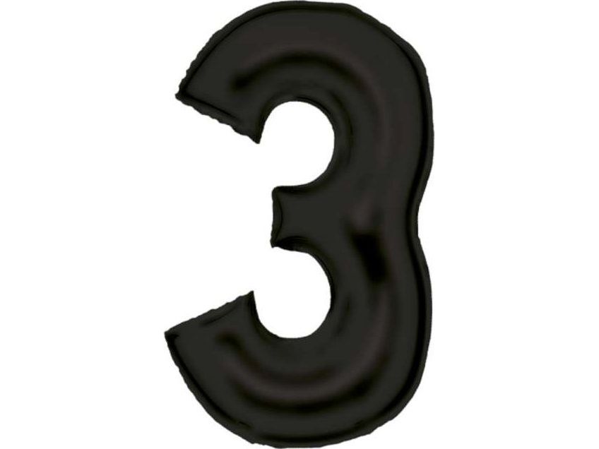 Folieballong nummer 3 satin svart 86 cm N34, packad 9917305