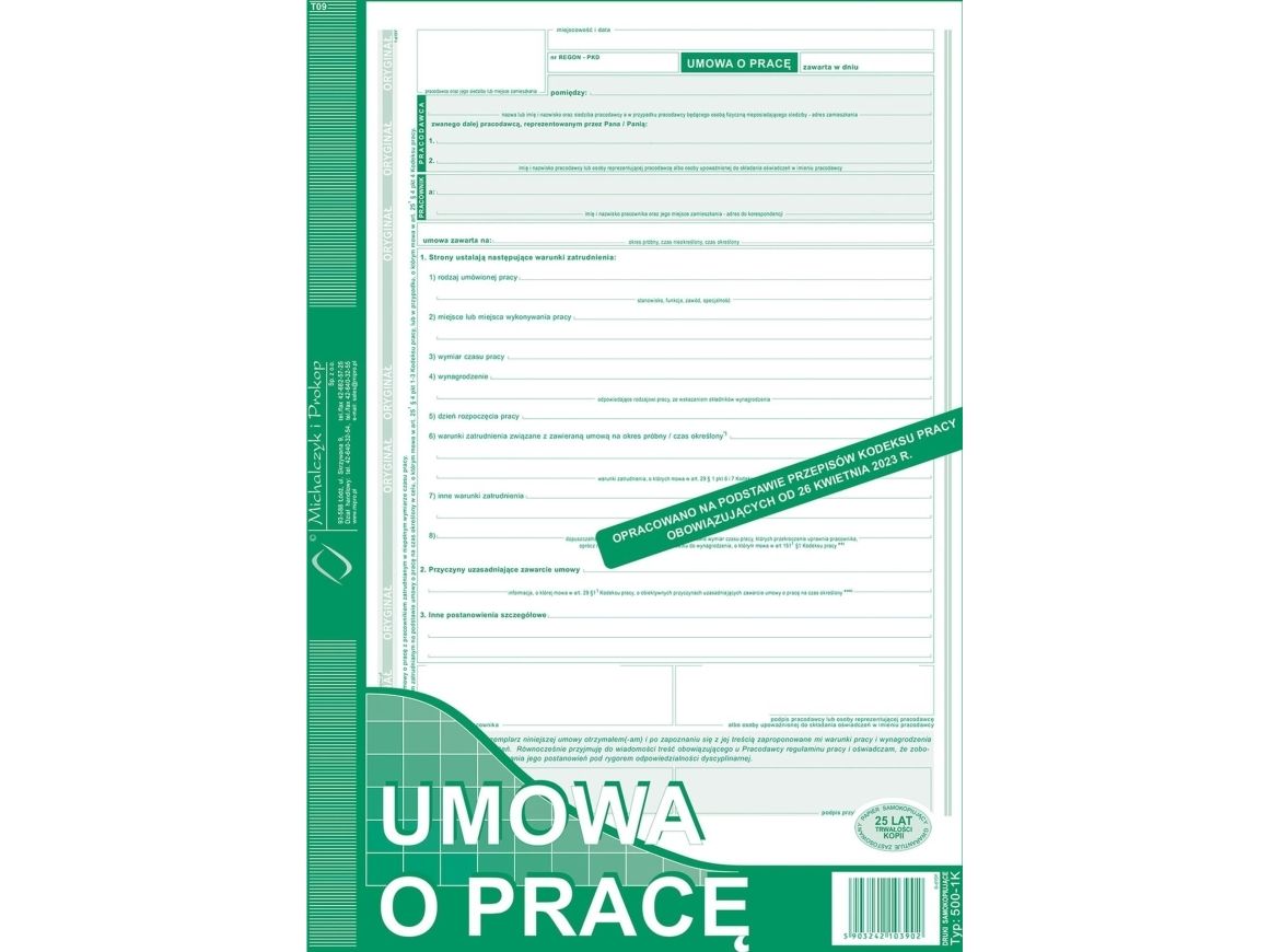 Michalczyk i Prokop 500-1K Umowa o Pracę A4 40kartek ( nowa ) Michalczyk i Prokop