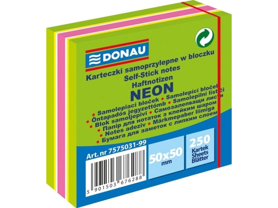 Donau KOSTKA självhäftande lappar, DONAU, 50×50 mm, 1×250 st, grön mix neon-pastell (7575031PL-99)