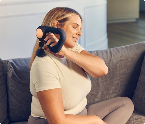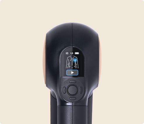 Massageapparaten Theragun Sense från Therabody kombinerar effektiv slagmassage med avancerade funktioner utformade för personlig vård. Den är utrustad med en inbyggd biometrisk sensor som ger feedback om musklernas prestanda samtidigt som den säkerställer optimal behandling för olika kroppsdelar. LCD-skärmen förbättrar användarvänligheten och gör det möjligt för användarna att effektivt följa sina massagesessioner. Theragun Sense är sladdlös och lätt och har en drifttid på 120 minuter, vilket gör den praktisk att använda när du är på språng. Medföljande tillbehör som boll, dämpare, tummassage-tillbehör och förvaringspåse ökar massagegerätets mångsidighet och tillgodoser individuella preferenser samtidigt som den ger lindring för trötta muskler.