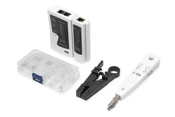 The DIGITUS network tools kit is an essential collection for anyone working with network installations and repairs. This kit includes a punchdown tool for connecting wires to telecommunication jacks, a crimp tool for creating custom connections, and a cable stripper for removing insulation without damaging the wires inside. Additionally, it features a reliable network tester to ensure optimal connectivity and a cable cutter/stripper for versatility in handling various types of cables. All tools are stored in a durable bag, making it easy to transport and access each component as needed.