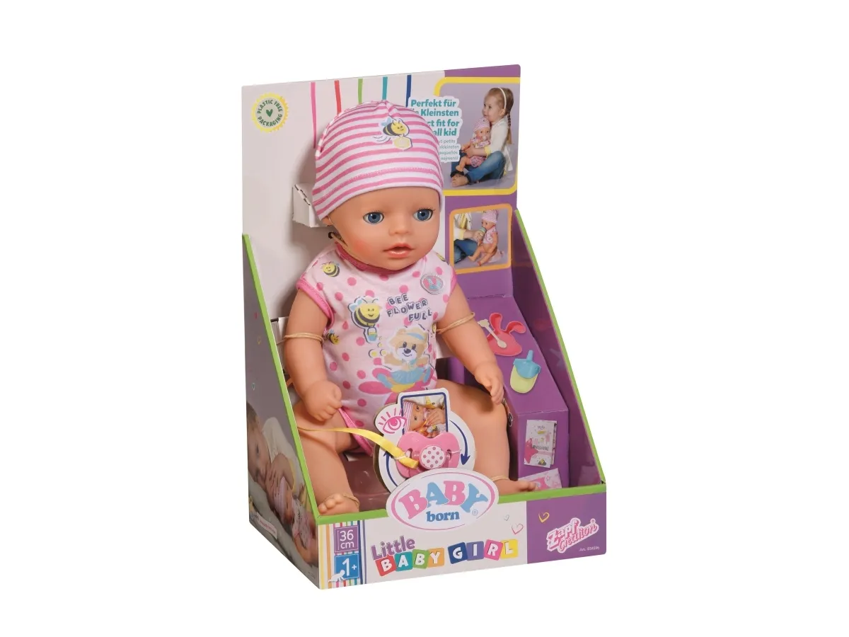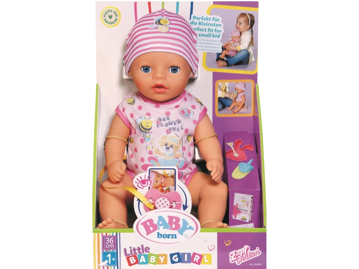 Brand- Zapf Creation Baby born. Height- 36 cm. Material- Plastic, Textile. Colour- Various colours. Recommended age from- 1 y. Caution for Toys- Use only at child-appropriate depths and under adult supervision.. Battery power supply- No. Batteries included- No. Mandatory warranty- 24 mo.