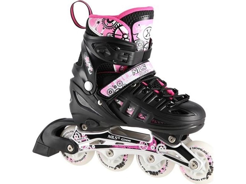 NH10905 4-i-1 rosa LED-rullskridskor str. M (31-34) med Nils Extreme hockeyblad