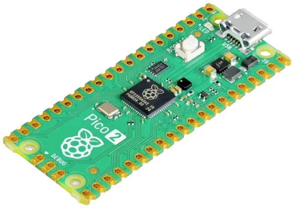 Raspberry Pi Pico 2 är ett mångsidigt utvecklingskort som är utformat för en rad olika projekt. Med 4 MB flashminne och en dubbelkärnig processor som arbetar i 150 MHz ger kortet prestanda för olika applikationer. Det är utrustat med 26 multifunktionella GPIO-stift som stöder gränssnitt som UART-, SPI- och I2C-styrenheter, vilket gör det lämpligt att integrera i hårdvaruprojekt.
